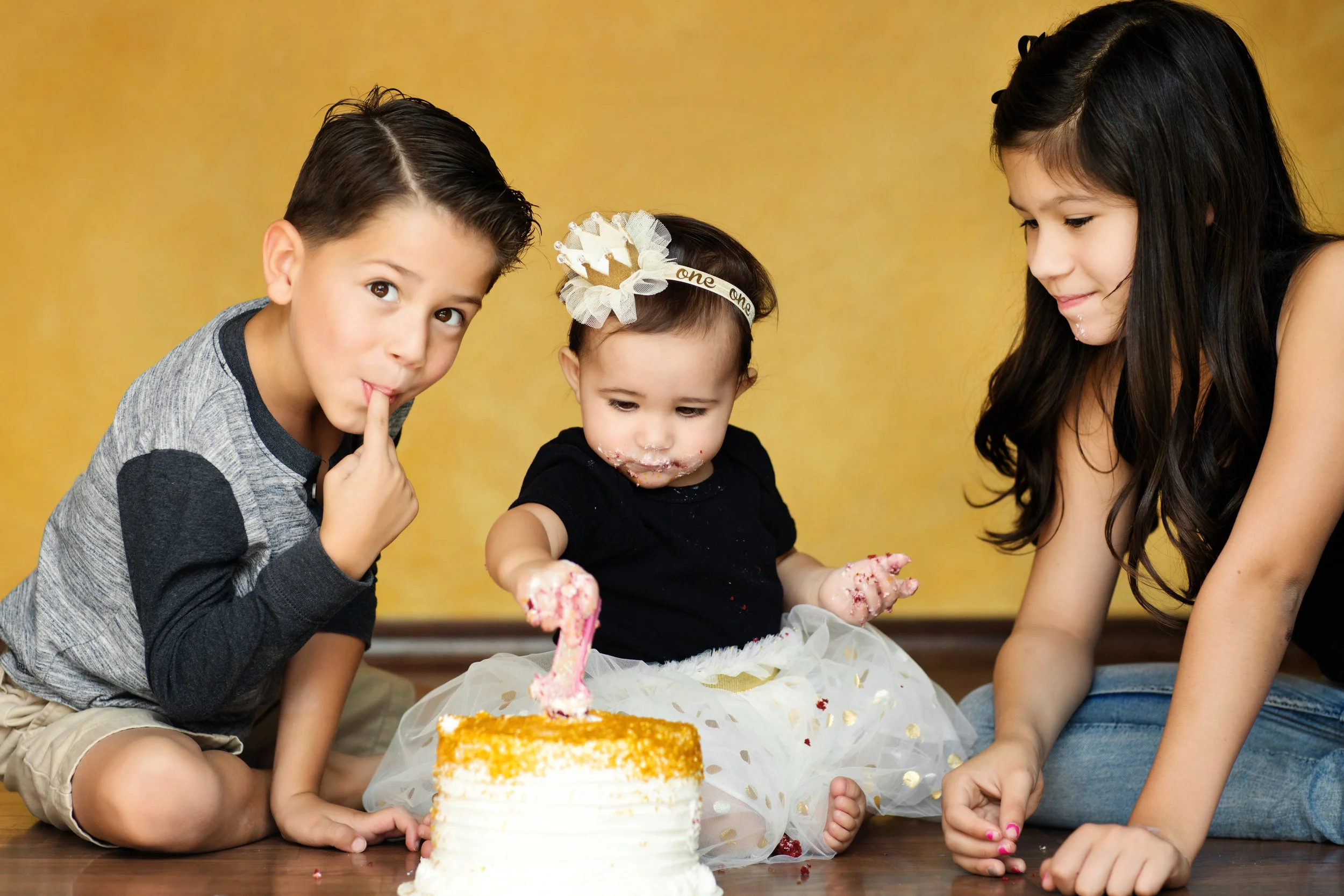 First of all, pinch me. These are MY kids??? LOVE THEM! Second of all, I am so thankful for my Aunt, Kathy Cole Photography, who captures the most precious memories of my family. We did a session for Mia's First birthday and she was such a turd...until the cake came out! Then she was all about it! She loved the cake and seriously cracked us up! Check out her cake smash photos below!